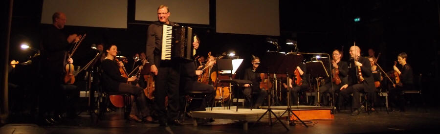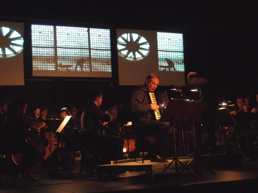 For å gjenskape atmosfæren, stemningen og musikken har den allsidige komponisten Fredrik Högberg laget en multimediakonsert for trekkspill og orkester. Jörgen Sundeqvist og Högberg har samarbeidet mye de siste årene og valget falt da naturlig på Sundeqvist som trekkspillsolist. Konserten hadde premiere på teateret i Kramfors Folkets park (Sverige) med Nordiska Kammarorkestern (NK) 22. januar 2015. NK kan i år feire 25 års-jubileum, og kveldens dirigent var Niklas Willén, som for øvrig var orkesterets (den gang Sundsvalls Kammarorkester) første sjefsdirigent. Willén er i dag bosatt i Tyskland og har hatt en fremgangsrik karriere. Den 23. januar kunne man høre konserten i Sundsvall (Sverige) som en del av Kulturfestivalen der, som i sin tur er en del av Umeå Kulturhovedstad 2014. I anledning sitt jubileum åpnet NK begge dagene med Paris-symfonien av Wolfgang Amadeus Mozart og Symfoni nr. 1 av Ludwig van Beethoven. |