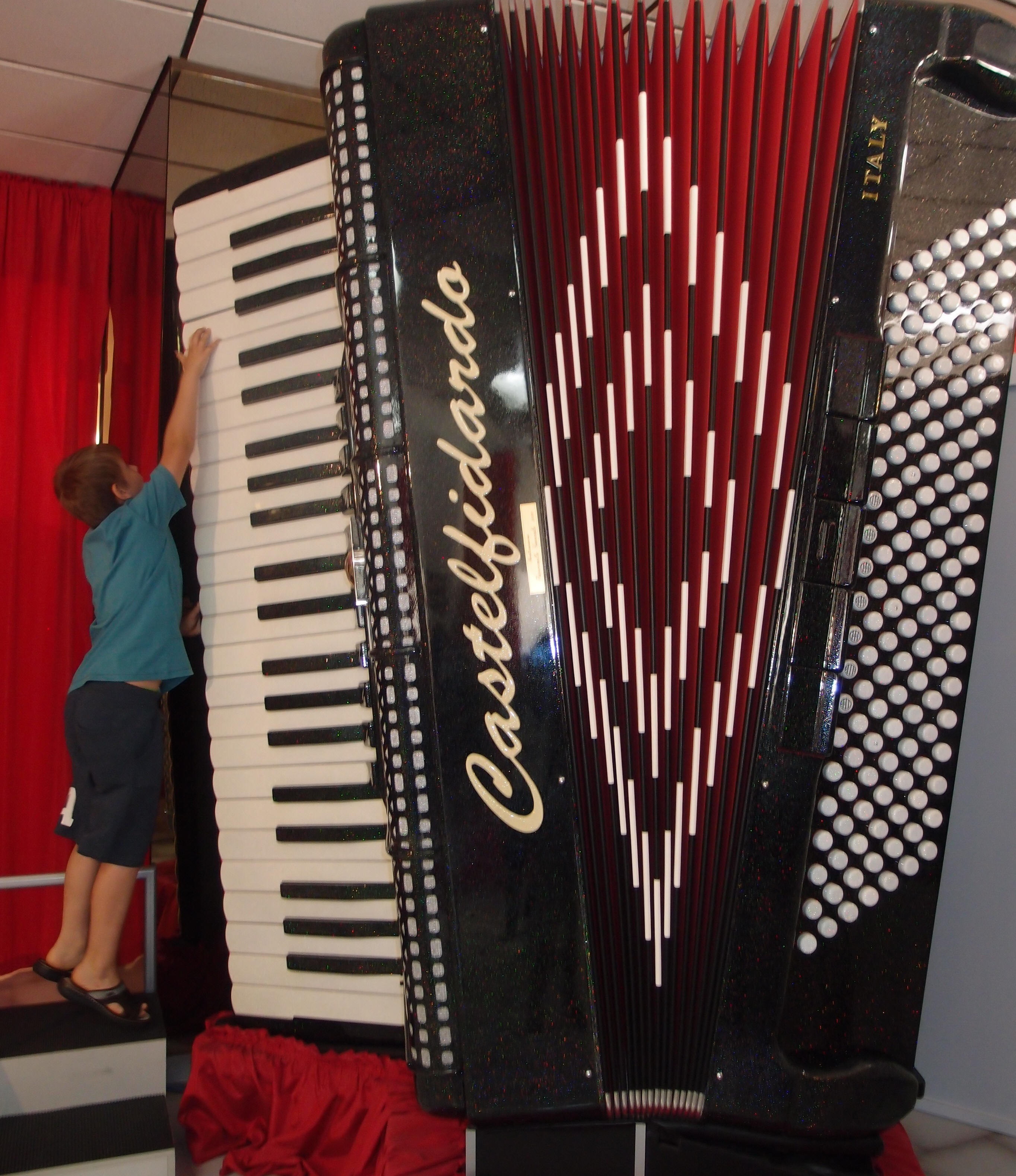 | Mathias Rugsveen var eneste norske deltaker i kategori A Klassisk solo opp til 12 år. Han endte opp på en flott 2. plass. Mellom øving og konkurranse sjekket han ut verdens største trekkspill |