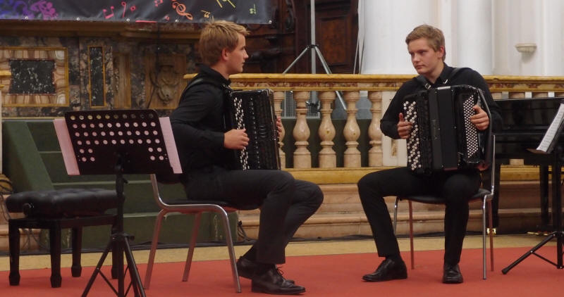 | Einar Thokle Hovden og Amund S. Bunkholt - kat. E Kammermusikk m/ kun trekkspill. Guttene gjorde en flott innsats for Norge, men det holdt dessverre ikke |