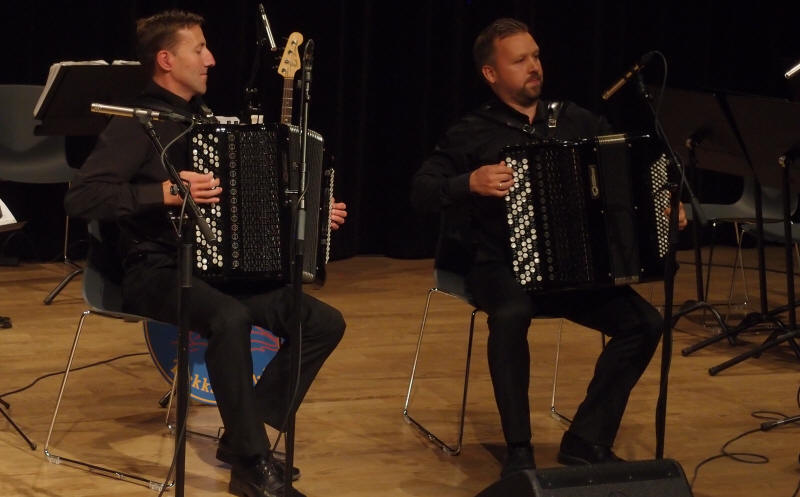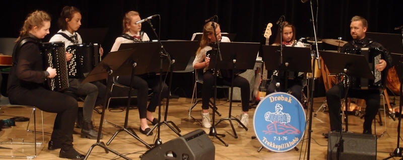 Jubilanten Drøbak TK åpnet selv konserten, men overlot så scenen til en av gjestene - Ås trekkspillorkester. Disse ledes av Stian Norgård Aase. I motsetning til Drøbak TK er denne gjengen bestående av kun unge trekkspillere, og vi fikk høre også tre små duetter av de to yngste i orkesteret. De avsluttet sin seanse med «Irsk suite» som de skal framføre i Praha i november under en internasjonal konkurranse. Det låt riktig så bra og autentisk irsk med innlånt perkusjonist på pauker fra Norges Musikkhøgskole. |