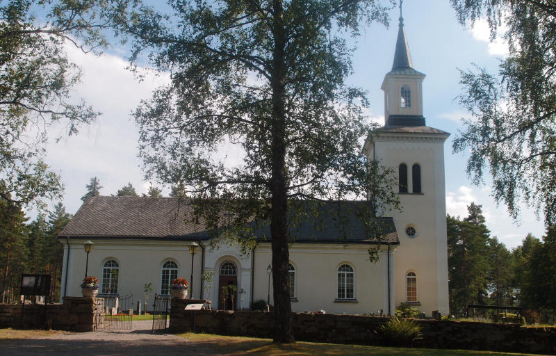 | Högeruds kyrka i Värmland. I 1646 ble et kapell i tømmer tatt i bruk, men med økt befolkningsvekst i 1850-årene , ble dette for lite. Dagens kirke ble innviet i 1867. |