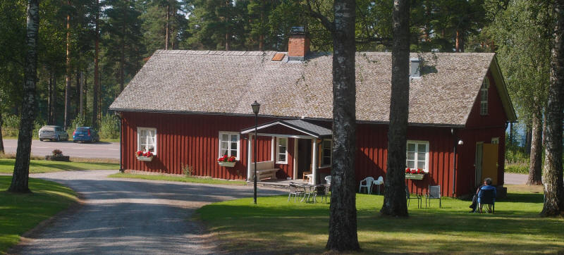 | Kafeen på nedsiden av Högeruds kyrka ligger plassert i hyggelige omgivelser. |