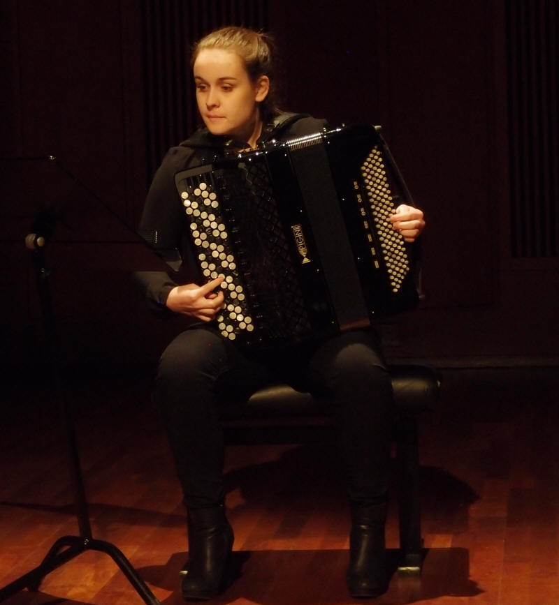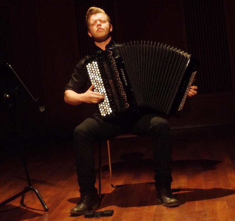 Trekkspillstudentene på Norges Musikkhøgskole (NMH), dvs. de som spiller på et instrument med belg på midten, inviterte igjen til konsert tirsdag 12. april 2016 i Levinsalen som en del av «Tirsdagsserien». Dette er studenter av Erik Bergene og Frode Haltli som begge underviser ved NMH. Det ble et variert program som spente fra folkemusikk og improvisasjon, via barokkmusikk til originalskrevet samtidsmusikk for trekkspill. Spennvidden viser tydelig at trekkspill er et «tøyelig begrep» slik Erik Bergene uttrykte det ved introduksjon av konserten. Intensjonen er å ha slike konserter en gang i halvåret. |