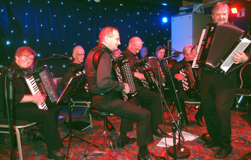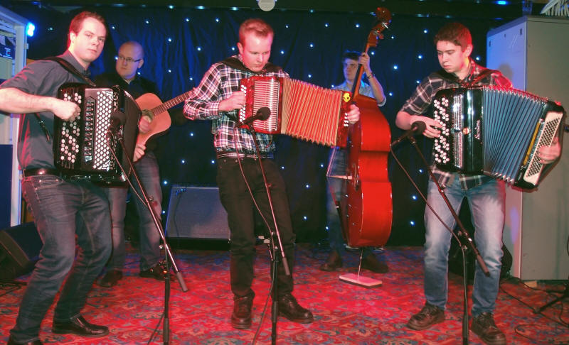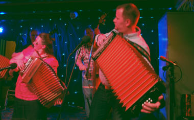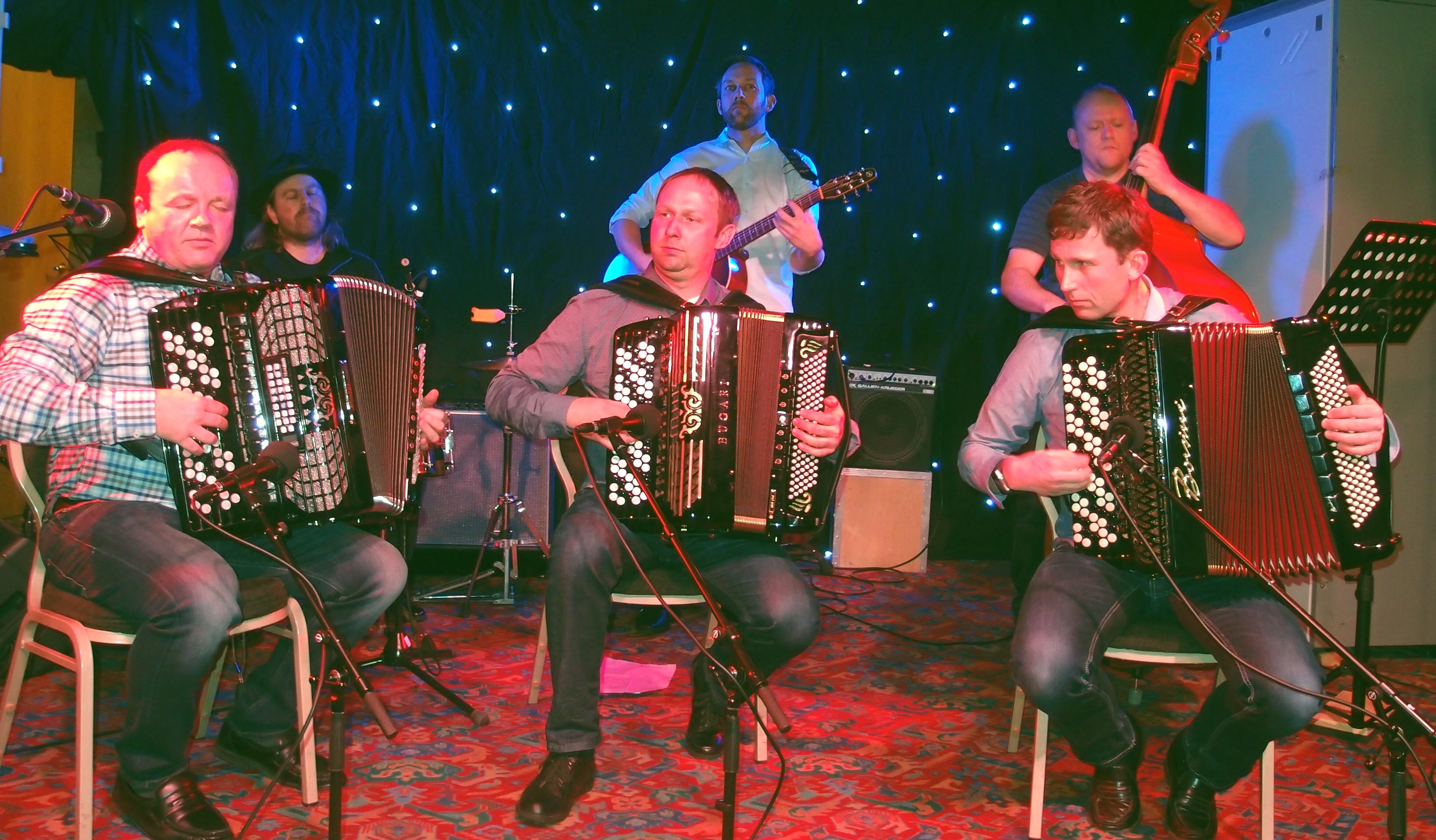 | Sirkus Armando - her med forsterkninger på trekkspill. F.v. Ole Anders Nybakken, Arne Roger Skjellerud og Thorleif Westby |
