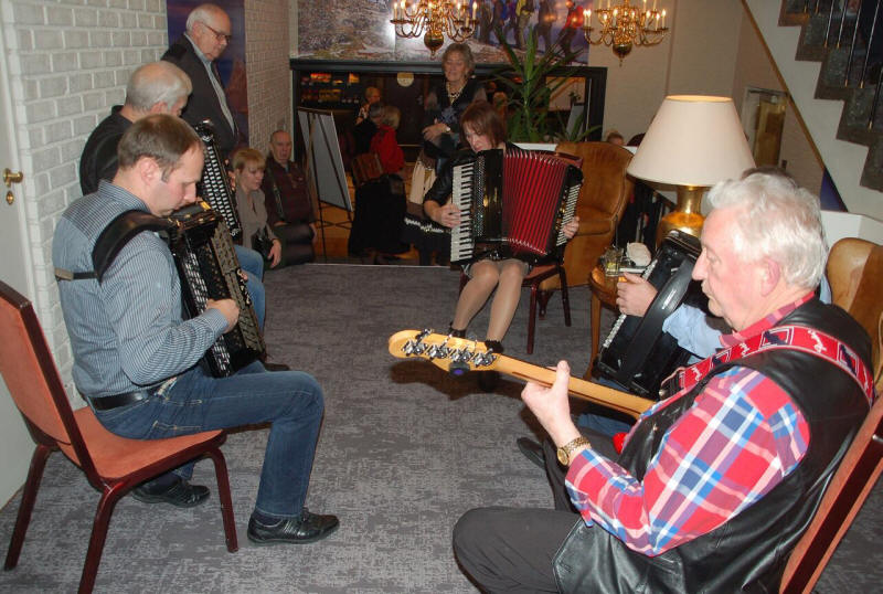 Per Knive skriver: "I 1977 fant det første Fagernestreffet sted. Initiativtaker til det første treffet var Arvid Skogheim fra Skogheim-reiser fra Vestre Slidre i Valdres. Han syntes det var synd at ingen trekkspillaktiviteter fant sted på vinterstid og fant ut at januar var en fin måned. Derfor inngikk han en avtale med Fagernes hotell, hvor arrangementet har funnet sted siden. I år er det det førtiførste treffet som blir arrangert med fullt hus av østlendinger som vil ha med seg starten på trekkspillåret på Fagernestreffet. Det er som mange år tidligere TeamTour som står for arrangementet og Jan Såtvedt og Per Erik Knive som arrangører. Blant deltagerne kan meldes Halden Trekkspillklubb og Svingen torader og det samme for medlemmer i Drammen Trekkspillklubb. Fredag var ankomstdag og etter middagen var det dans fra to scener, Baren og Strandafjorden. Lørdag ettermiddag var det faste innslaget en konsert hvor det som deltok fikk spille to melodier. Den som hadde reist lengst, Øyvind Nilsen fra Skippasgurri, fikk spille sine to melodier, Vals i lekstugan av Ebbe Jularbo og Guitarboogie. Under dansen fredag deltok den lokale trekkspillgruppa Slidringadn, mens på lørdag spilte Aurdal trekkspillklubb og en gruppe av eks-Fagernesinger, Hundadn." |