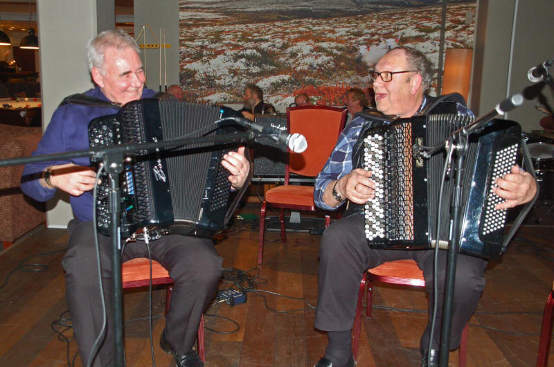 | Per Bredesen (t.v.) og Roar Svendsen hadde det moro på scenen i Baren |