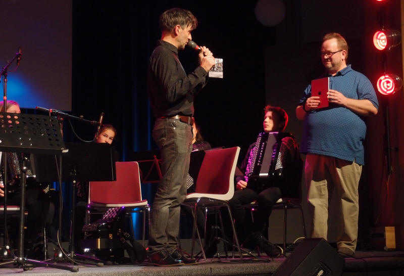 Otto er den som alltid bobler over av ideer. De mest ville blir stoppet av Heidi hjemme i stua, mens styret vurderer videre og gir klarsignal. I år gjennomførte de ‘Tour de Accordeon’ hvor NM på trekkspill i Skien var 10. og siste etappe. Og så har de fått lurt med seg en fyr fra Sortland - Skjalg Bjørstad. Han er musiker og komponist og skreddersyr på bestilling verk til spellemannskompaniet. Støtte fra Sparebankstiftelsen DnB og andre sponsorer har gjort det mulig med både CD-innspilling, nytt repertoar og seminarer. Sparebankstiftelsen hadde også sponset billetter og mat til barn og ungdom under jubileumskonserten. Den nyeste CDen, ‘Mossbarock’, er forresten så fersk at den kom levert på døra dagen før, og er sågar et dobbeltalbum. |