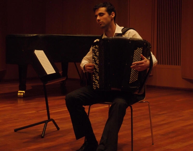 Trekkspillstudentene på Norges Musikkhøgskole (NMH) presenterte nok en gang musikk innenfor ulike sjangere som klassisk, samtidsmusikk, folkemusikk, tango, jazz og Balkanmusikk - alt spilt på instrumenter med belg på midten - også i samspill med andre instrumenter. Konserten ble avsluttet med balkantoner fra Bjørn-Petter Tøsses trekkspill. Vi fikk umiddelbart assosiasjoner til Farmers Market - ikke bare fordi han hadde hjelp av Gabriel Øien Carstensen (sønn til Stian Carstensen) på perkusjon, men også hadde med gitar (Daniel Delchev) og bass (Simen Wie) - til og med bassistens hårpryd kunne minne om Finn Guttormsens...;-) |