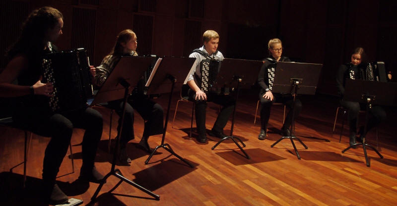 Trekkspillstudentene på Norges Musikkhøgskole (NMH) presenterte nok en gang musikk innenfor ulike sjangere som klassisk, samtidsmusikk, folkemusikk, tango, jazz og Balkanmusikk - alt spilt på instrumenter med belg på midten - også i samspill med andre instrumenter. Publikum ble også presentert for Andreas Borregaard fra Danmark som har fått stilling som universitetslektor ved NMH, hvor han har akkordeon som fagområde. |