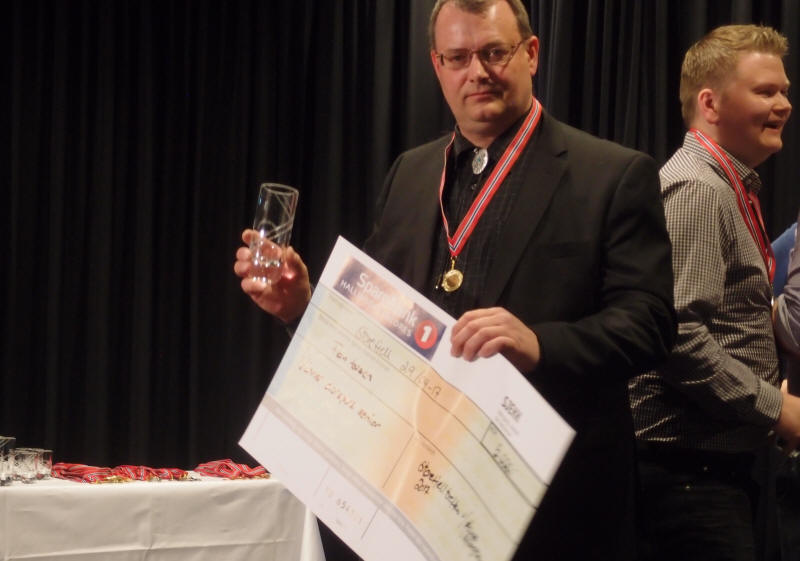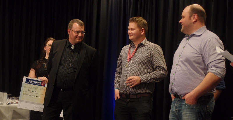| Durspill senior - et spennende øyeblikk med de 3 beste på scenen før vinneren utropes. F.v.: Øystein Nicolaisen, Mads Erik Odde og Geir Marius Thorud |