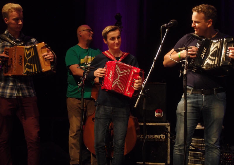 Trysiltreff nr. 33 er alt historie og ble avviklet på Radisson Blu Resort Trysil, samme sted som i 2014 og 2015. Treffet startet opp som sedvanlig med ‘Takk for sist’-kveld på torsdagen der de aller ivrigste allerede var på plass og kunne buskspille/jamme i puben ‘Sagbruket’. For de som hadde bevilget seg en kort arbeidsdag på fredag, kunne de rekke fram til hele to ettermiddagskonserter før middagen. Den første var en konsert med ‘Bente Kvile Buflod, Ida Kvile og Anders Buflod’. Familietrioen, som har musisert og sunget sammen siden slutten av 80-tallet, trakk et 100 talls publikummere. Dernest kunne man bli sittende for å overvære neste konsert med ‘Fem om dagen’ – en gruppe som startet opp i 2014 og som har utviklet sin egen spillestil. Dansespillingen var i år konsentrert til én scene. Buskspill var ikke tillatt i resepsjonsområdet, men derimot i ‘Sagbruket’. Muligens var det plasseringen av denne puben som bidro til at man mistet litt grepet om hvordan stemningen artet seg, men en meget positiv, serviceinnstilt og trekkspillinteressert hotellansvarlig, ymtet frempå at neste år er det trolig mer hensiktsmessig å flytte buskspillerne noe nærmere dansesalene. |