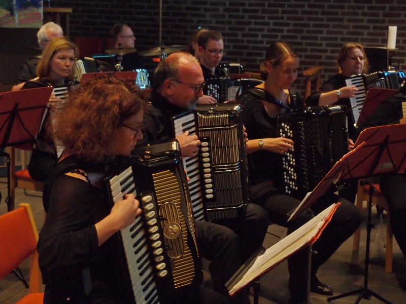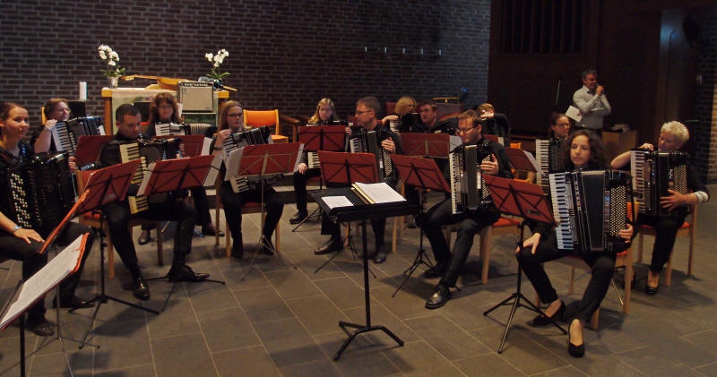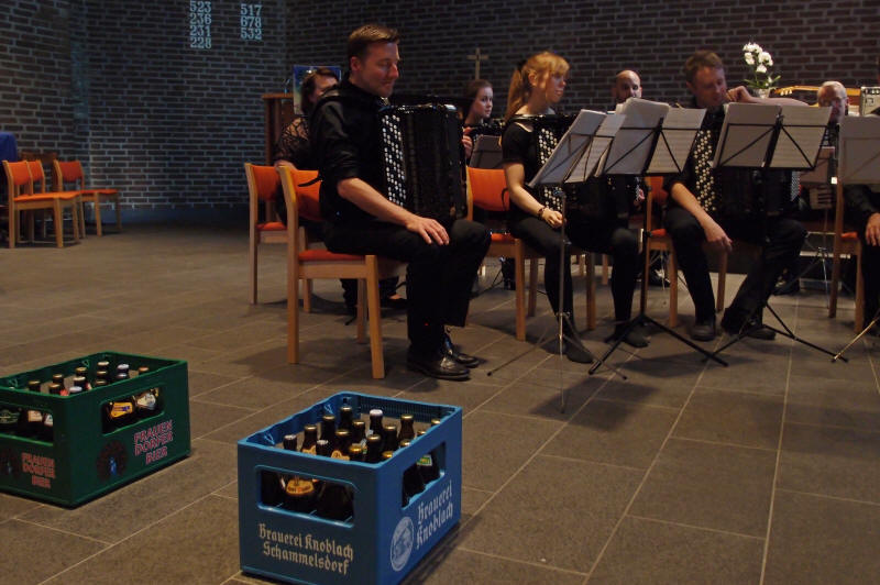 NAO ble stiftet i 1946 og består i dag av ca. 27 trekkspillere som i all hovedsak er amatører . De er meget aktive, har vunnet flere førstepriser i ulike internasjonale konkurranser og holder konserter til stadighet i inn- og utland. Nåværende dirigent og musikalske leder er Stefan Hippe som har innehatt denne rollen siden 1998. De spiller en del samtidsmusikk, men repertoaret er hovedsaklig klassisk musikk – slik som vi fikk høre i Stovner kirke. Edvard Griegs ‘Våren’ (Melodie nr. 2) var også på programmet , men man kan trygt si det var mer enn ‘vår i luften’ denne kvelden. Det har aldri noensinne blitt målt høyere temperatur i Norge i mai måned. NAO hadde hørt at Norge er et kaldt land og kunne ikke forstå at gradestokken viste over +30C . Etter at de hadde avsluttet sin avdeling kunne det dermed ikke passe bedre enn at de overrakte OTK to kasser medbragt lokalt tyskbrygget øl. Dette var den eneste konserten de skulle ha i Norge denne gangen, men vi får håpe at de kommer tilbake ved en senere anledning. |