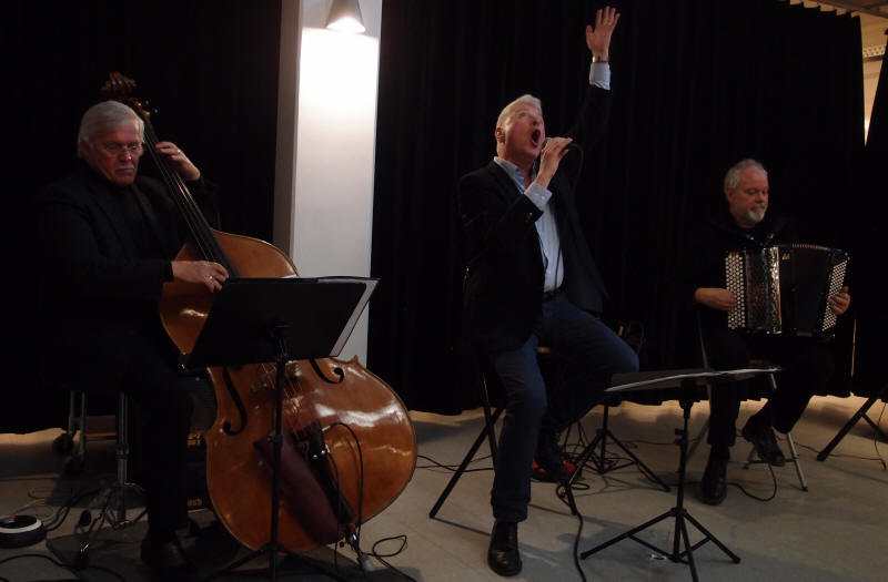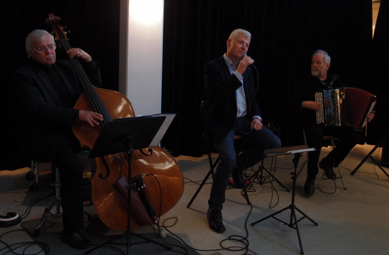 I anledning av at Vidar Sandbeck i år ville fylt 100 år den 21. juli, har duoen ‘Den Gode Melodi’ bestående av Leif Blix på vokal og Lars Nygaard på trekkspill laget en hyllest til jubilanten og vi fikk anledning til å overvære en av de siste konsertene på Østlandet torsdag 19.04.2018 i Ski bibliotek støttet av Fond for utøvende kunstnere. Duoen har også hatt med seg Stig Adolfsen på kontrabass. De åpnet konserten med ‘Menuett i mai’ som passet godt årstiden tatt i betraktning. |