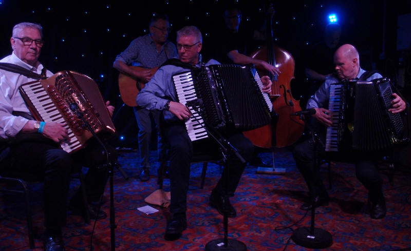 | Pianokameratene (f.v. på pianotrekkspill :Oddvar Fingarsen, Svein Midtlien og Roar Hensvold) - dansespilling |
