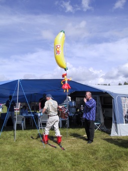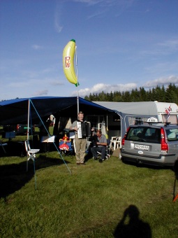 For at de lett skulle finne fram til plassen på Högsby Camping, gate G, fant vi ut at en banan på toppen av campingvognen måtte være tingen.